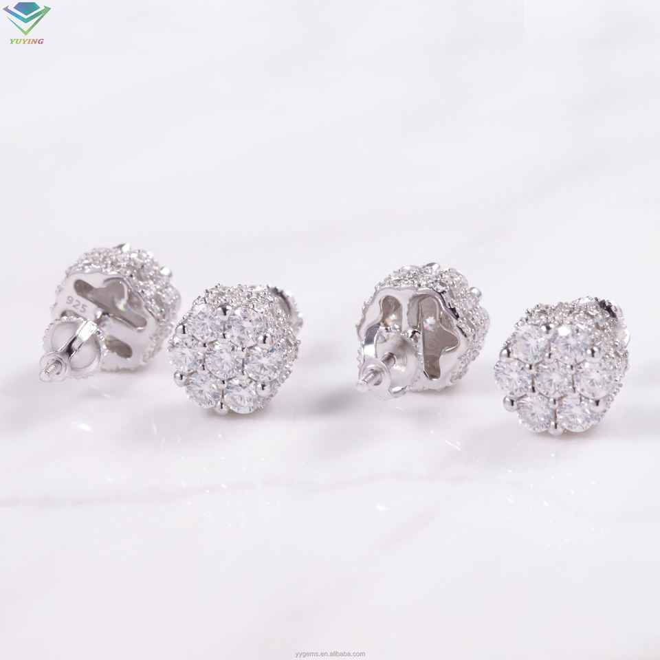 Hot Selling 925 Silver Flower Ear Studs Cluster GRA Certified Screw Back for Men and Women Gold Plated Moissanite earring