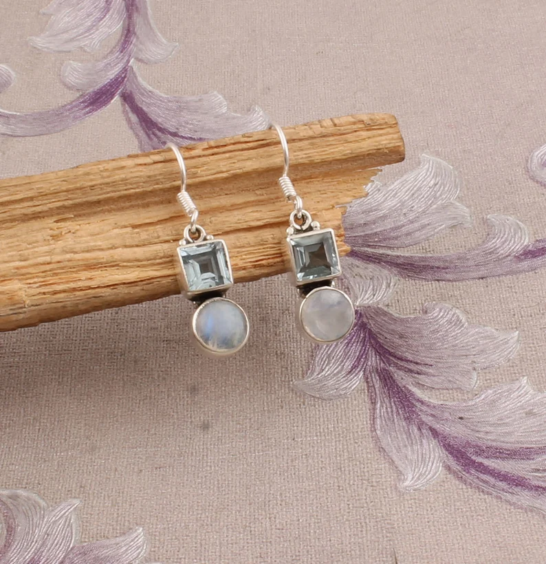 Hot Selling 925 Sterling Silver Blue Topaz & Rainbow Moonstone Hoop Earrings for Weddings Parties and Gifts Factory Price