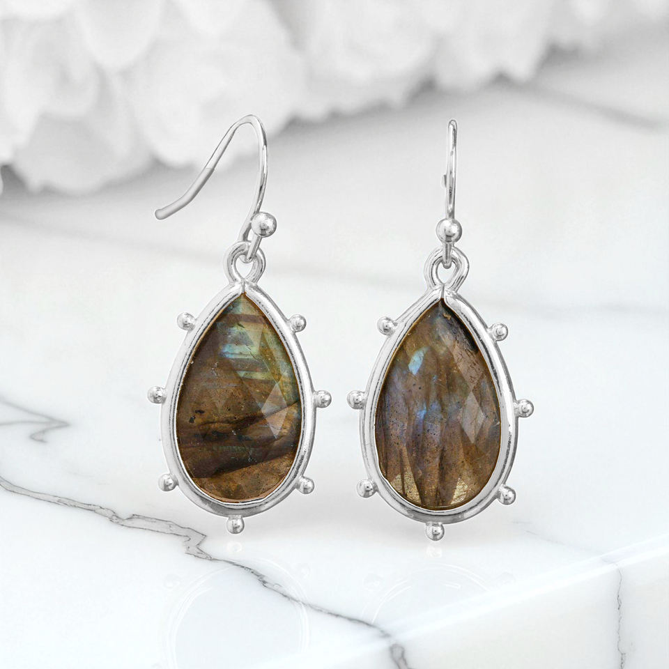 Hot Selling 925 Sterling Silver Faceted Labradorite Drop Dangle Earrings Custom Factory Wedding Occasion Bulk Moissanite