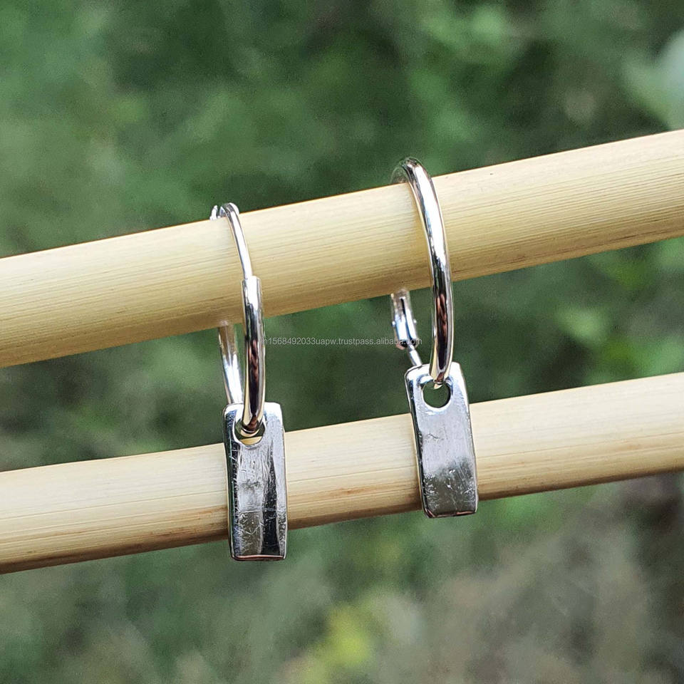 Bar Charm 925 Sterling Silver Fine Hoop Earrings