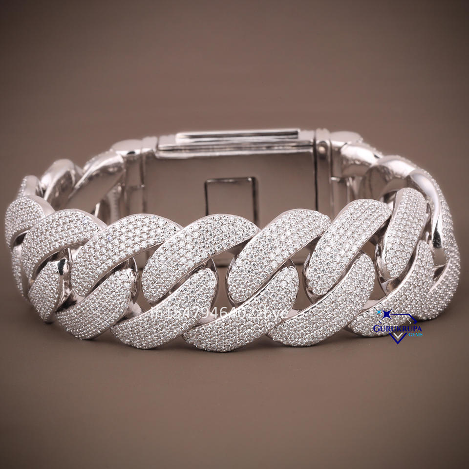 Hot Selling 925 Sterling Silver Lab Grown Diamond Hip Hop Full Iced Out High Quality Mens Fashion Jewelry Trending Bracelet