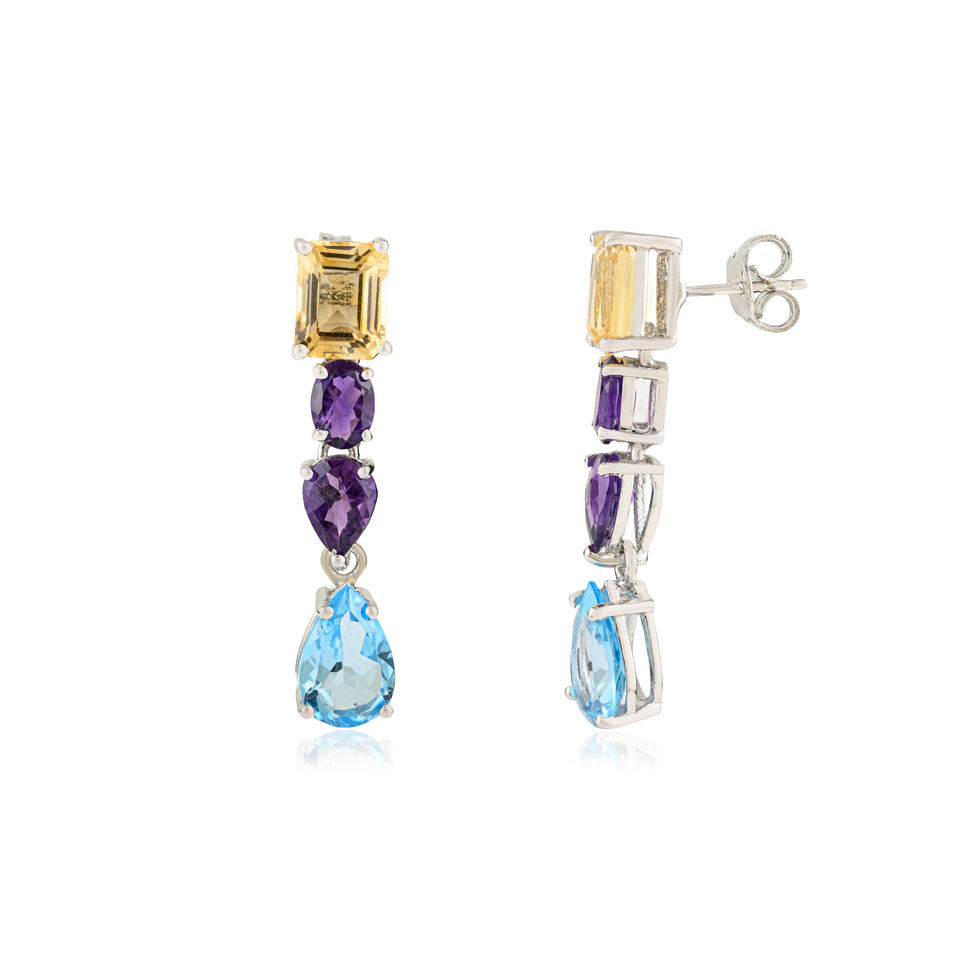 Hot Selling 925 Sterling Silver Multi Gemstone Drop Earrings High Finish Quality Long Dangle Earrings Fine Jewelry