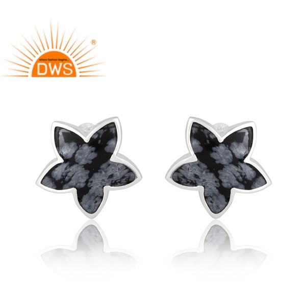Hot Selling 925 Sterling Silver Natural Snowflake Obsidian Gemstone Earring Custom Jewelry For Women Gift For Her