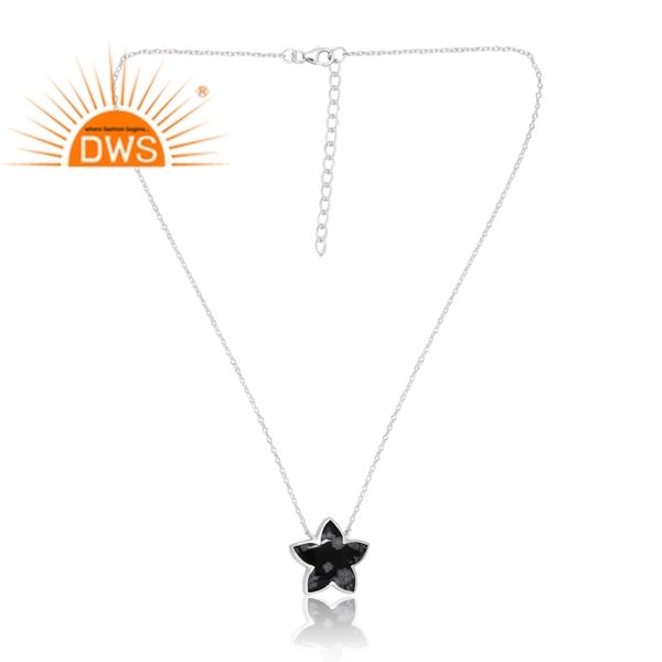 Hot Selling 925 Sterling Silver Natural Snowflake Obsidian Gemstone Pendant Custom Jewelry For Women Gift For Her