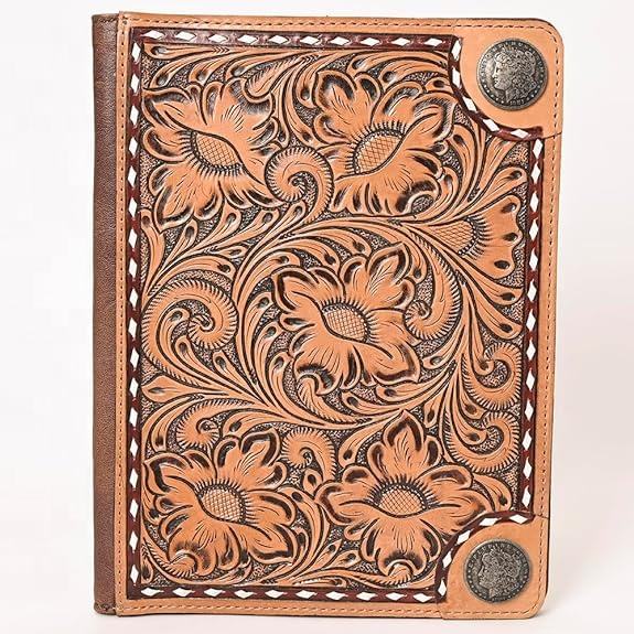Hot Selling A4 A5 Size File Cover Portfolio Papers Documents Organiser High Quality Soft Leather Cover With Tooling & Pockets