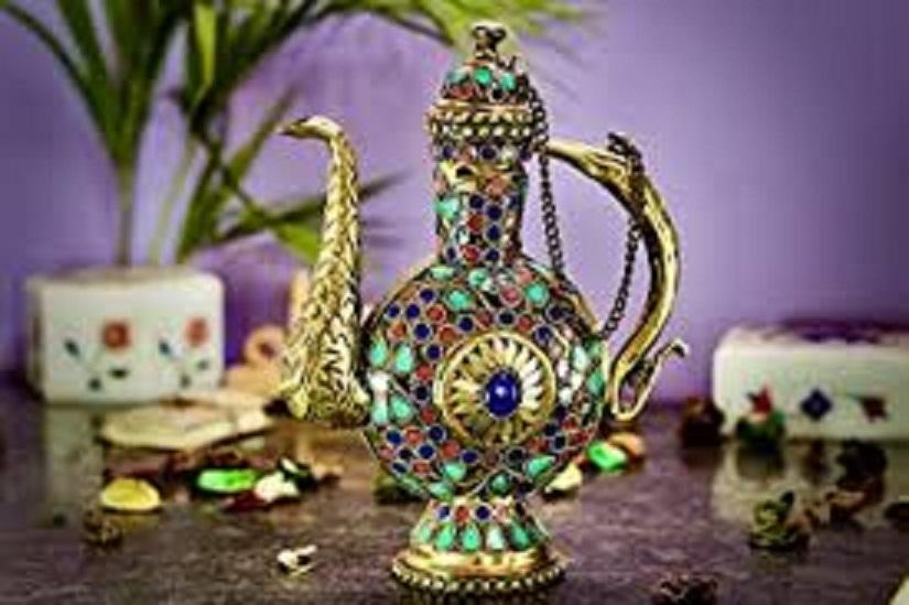 Hot Selling Aftaba Set Arabic Wine Set with Indian Style Eco-friendly Brass Dallah for Coffee & Tea