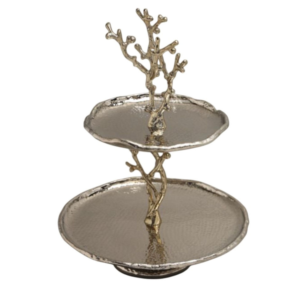 Hot Selling Aluminium Metal Silver Branch 2 Tier Serving Tray For Wedding Party Event Home Decor Centerpiece Cupcake Stand