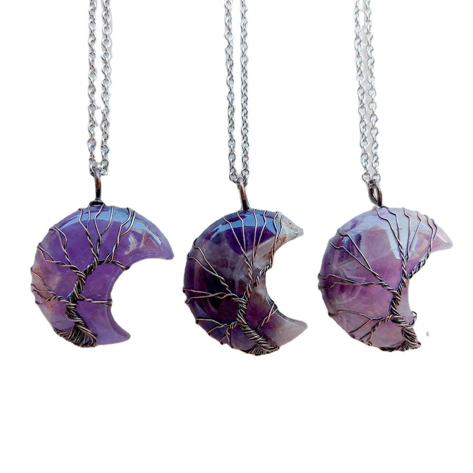 Product name:Amethyst Wire Wrapped Moon Pendant