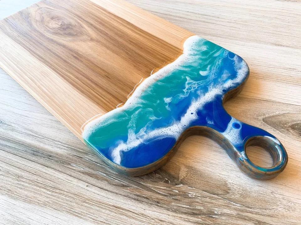 Unique Design Wooden Chopping Board Rectangle Eco-Friendly Kitchen Chopping Resin Cheese Board Kitchenware for Home Use.