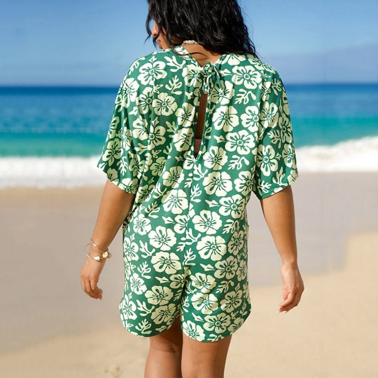 Hot Selling Beach Women's Jumpsuit V-neck Printed Short Sleeve Jumpsuit Custom Rayon Short Romper