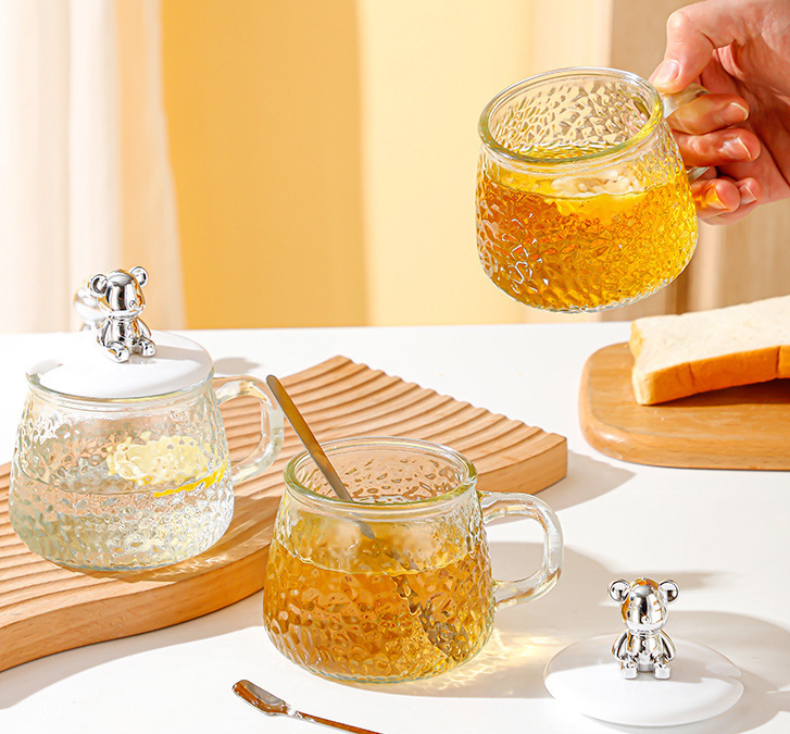 Product Name:Bear Lid Glass Mug Eco-Friendly Coffee Cup with Spoon