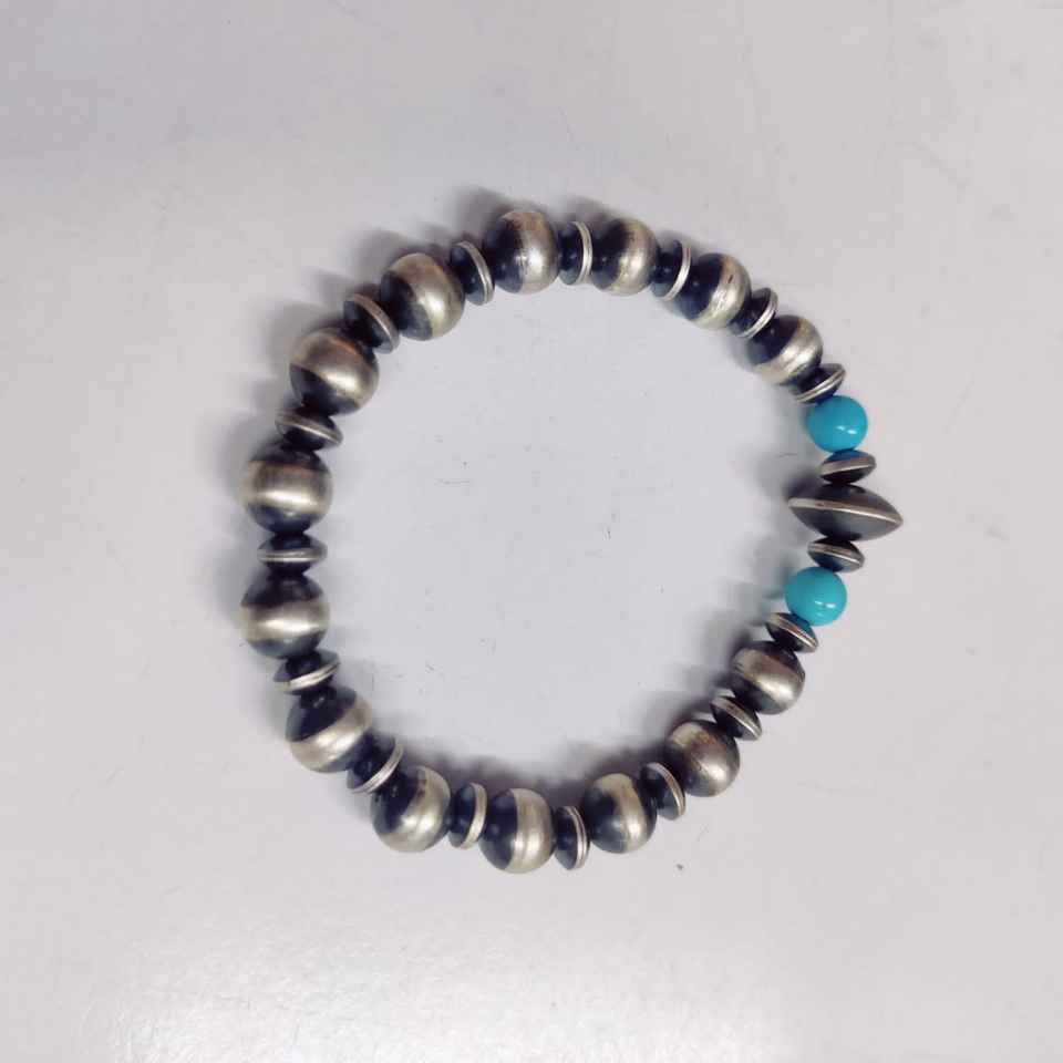 Hot Selling Beautiful Navajo Natural Blue Turquoise Beaded Bracelet Handmade Navajo Loose Beads Sterling Silver Beaded Bracelet