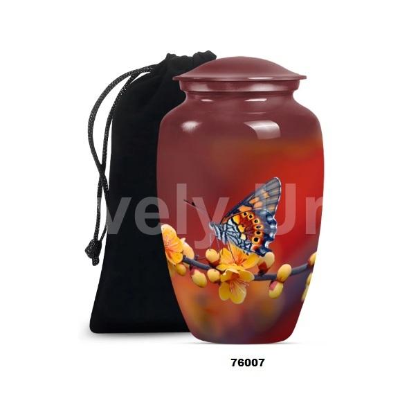 Hot Selling Beautiful Pink Butterfly Aluminium Cremation Adult Urn For Human Ashes With Lid & Free Velvet Bag