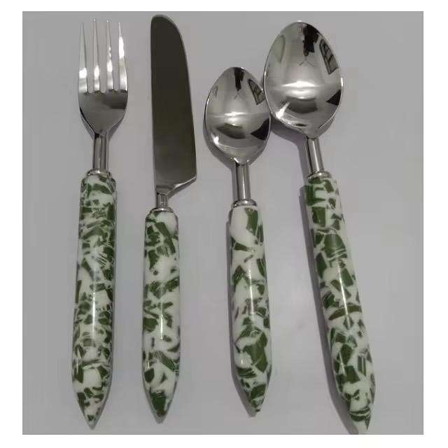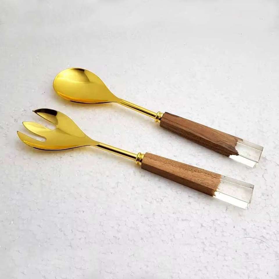 Hot Selling Best Design Gold Plated Stainless Steel with Resin & Wooden Touch Handle Salad Server for Kitchen & Dinning