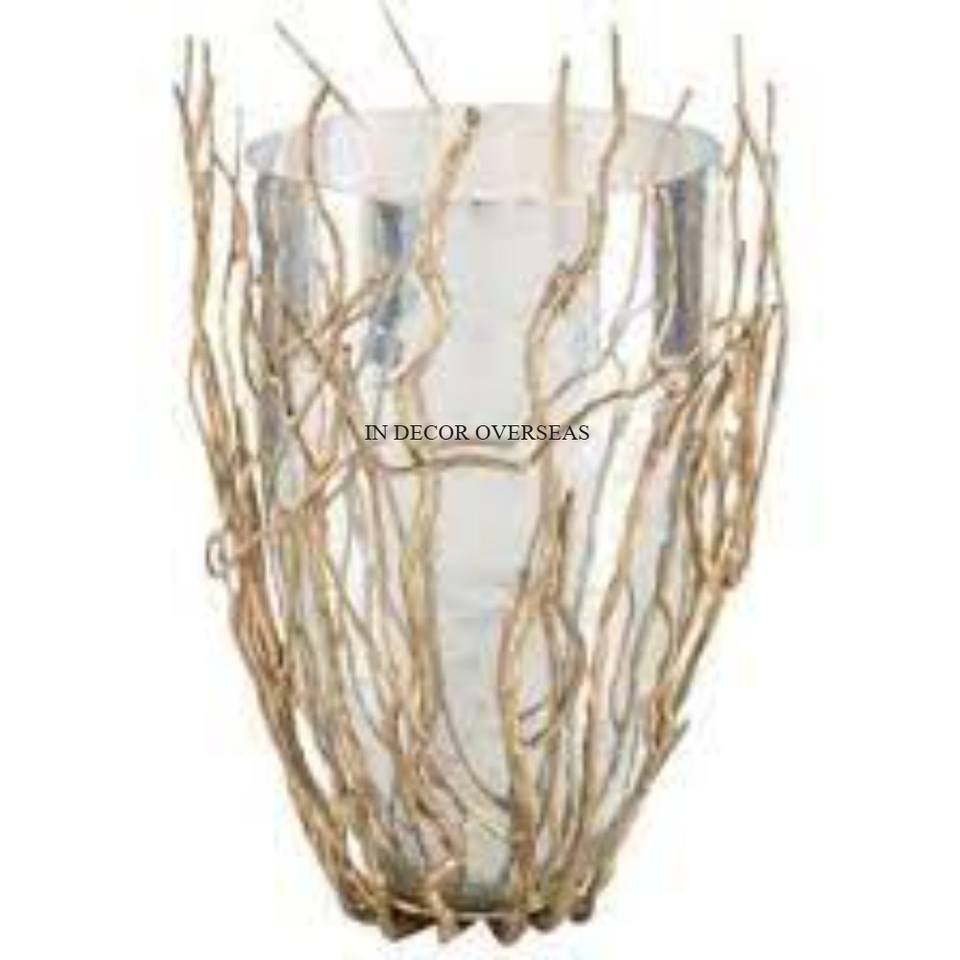 Hot Selling Best Quality Clear Glass Made Flower Vase With Gold Plated Leaves Design Home And Hotel Table Centerpiece Decoration