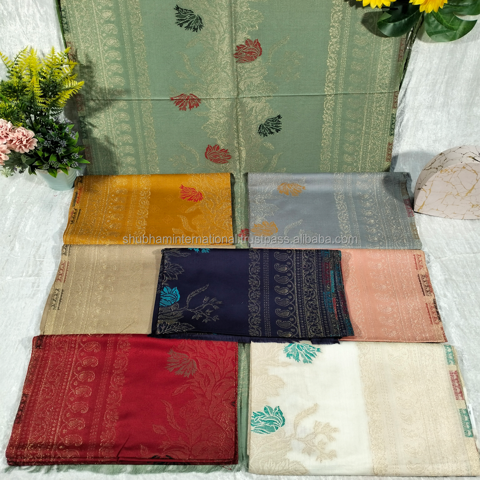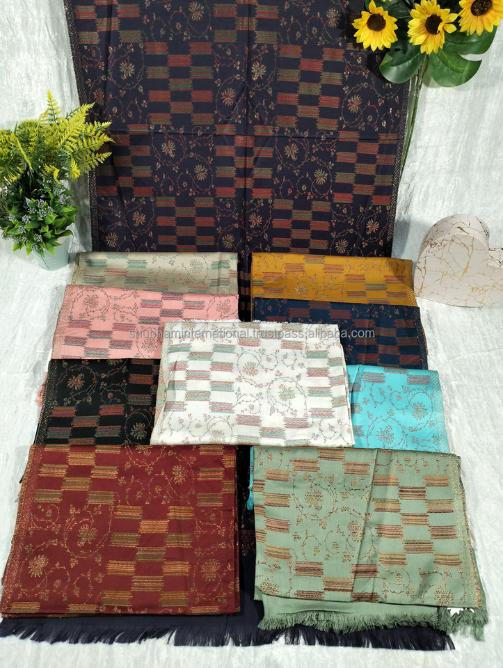 Hot Selling Best Quality Indian Pashmina Shawl Beautifully Designed with Luxurious Wool Border Work for Muslims