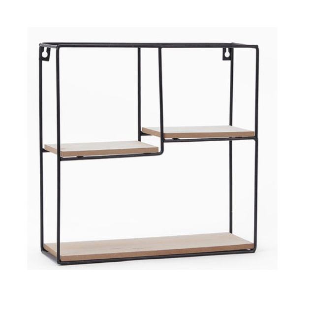 Hot Selling Black Iron Includes 2 Tier Shelves Organizer Clear Finished, Solid Wood Black Iron Storage Shelf For Home