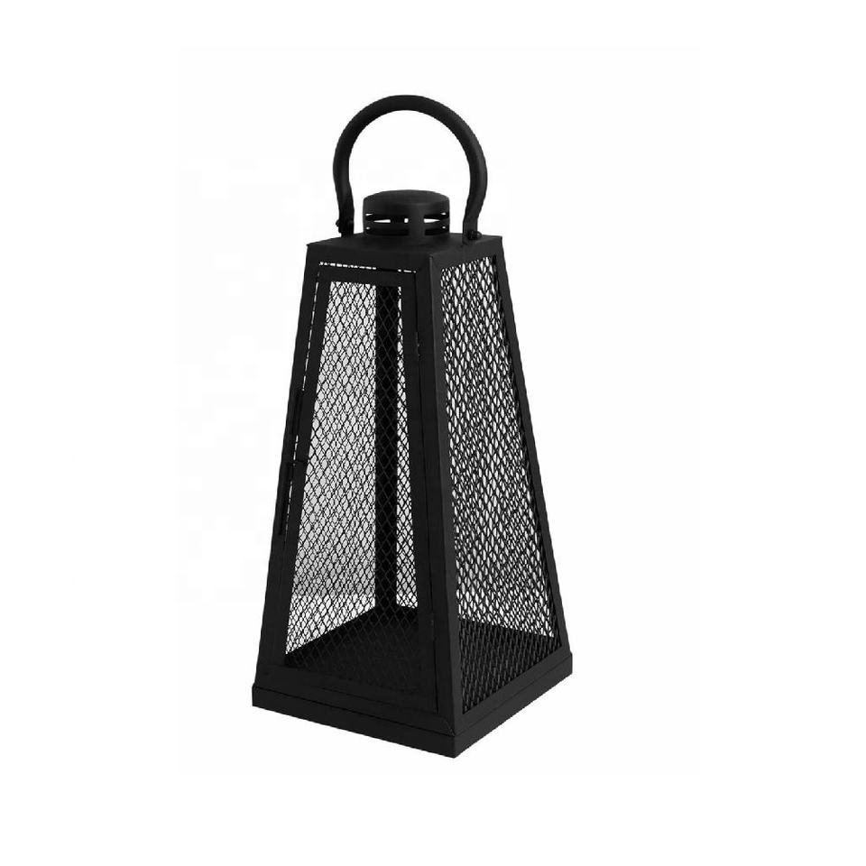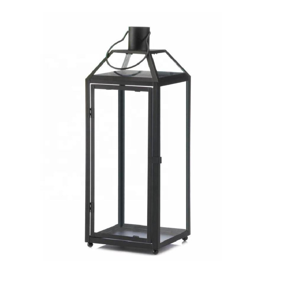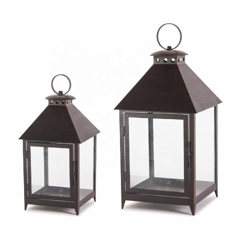 Hot Selling Black Ring Top House Glass Iron Candle Lanterns Holders Set of 2 Living Room Garden Hanging Lantern Home Decoration