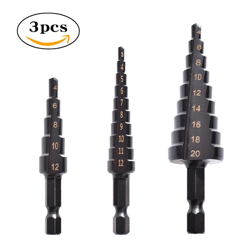 Hot-Selling Black Step Drill Bit Set Multi-Functional Pagoda Straight Flute Woodworking Hole Reaming Tool Hexagonal Shank for