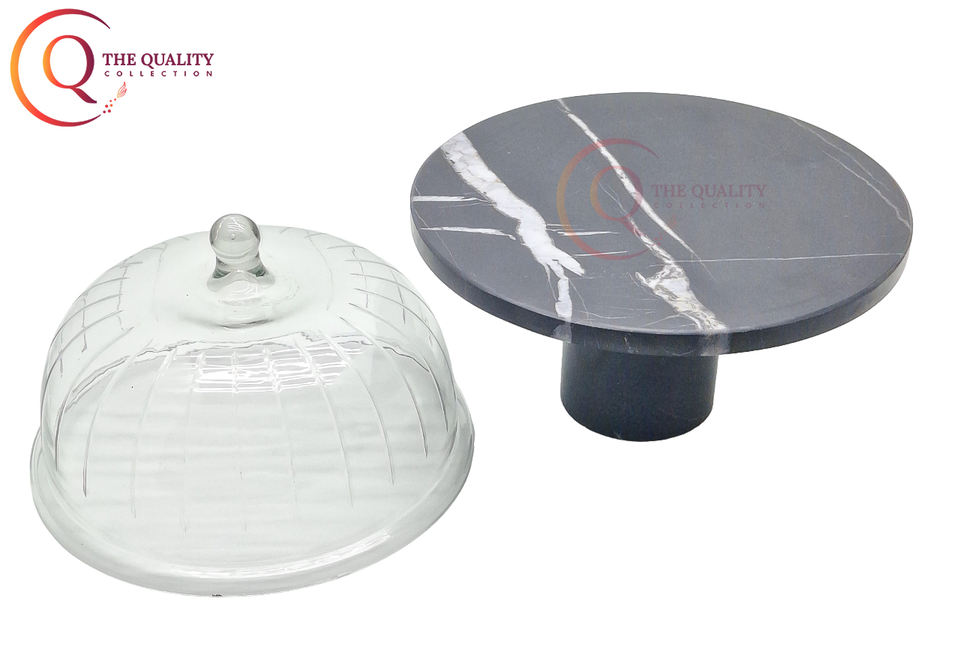 Hot Selling Black Textured Marble Cake and Pastry Stand with Glass Dome Christmas Decoration Cake Tool for Pastry Cookies.
