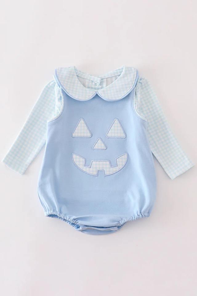 Hot Selling Comfortable Kids Outfit with Fun Halloween Design Blue Bubble Applique Set for Halloween Solid Pattern