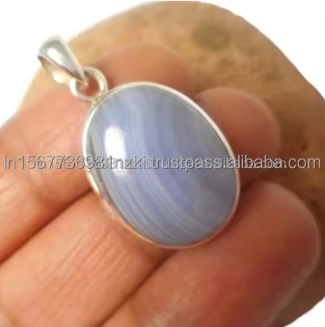 Hot Selling Blue Lace Agate Heart Pendant Natural Gemstone Necklace in Sterling Silver Jewelry Heart Stone Pendant Gift for Her