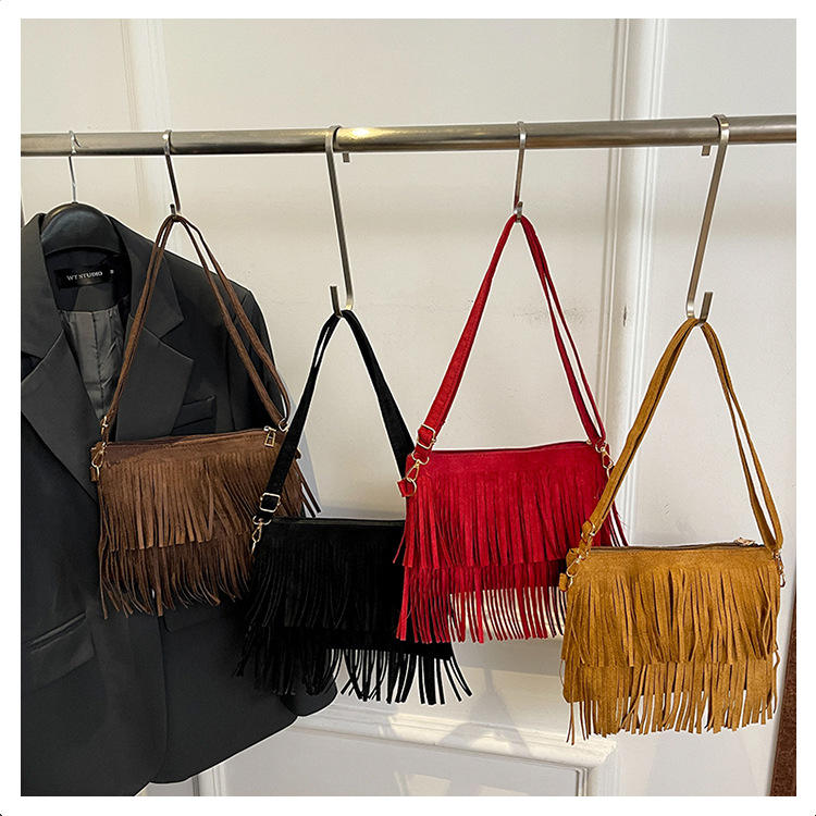 Hot Selling Bohemian Style Fringe Crossbody Bag Retro Suede Shoulder Bag Casual Women's Vintage Suede Leather Bag with Tassels