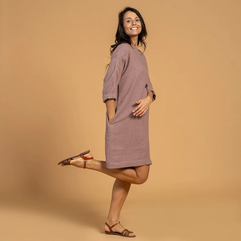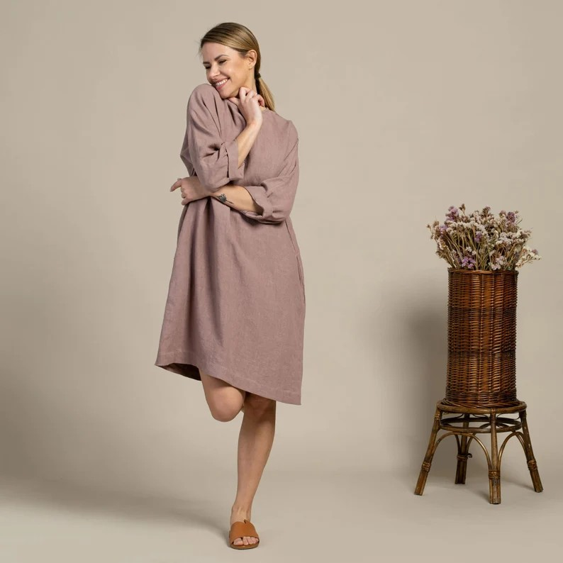 Hot Selling Boho Midi Romantic Mini Dress for Women Plus Size Loose Linen Plain Gray Long Arm Back Logo Summer Beach Style