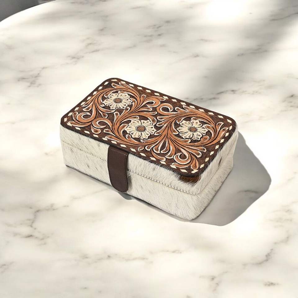 Hot Selling Boho Vintage Western Cowhide Genuine Leather Tote Bag Zipper Waterproof 3L+ Capacity Jewellery Box Handbags Fashion