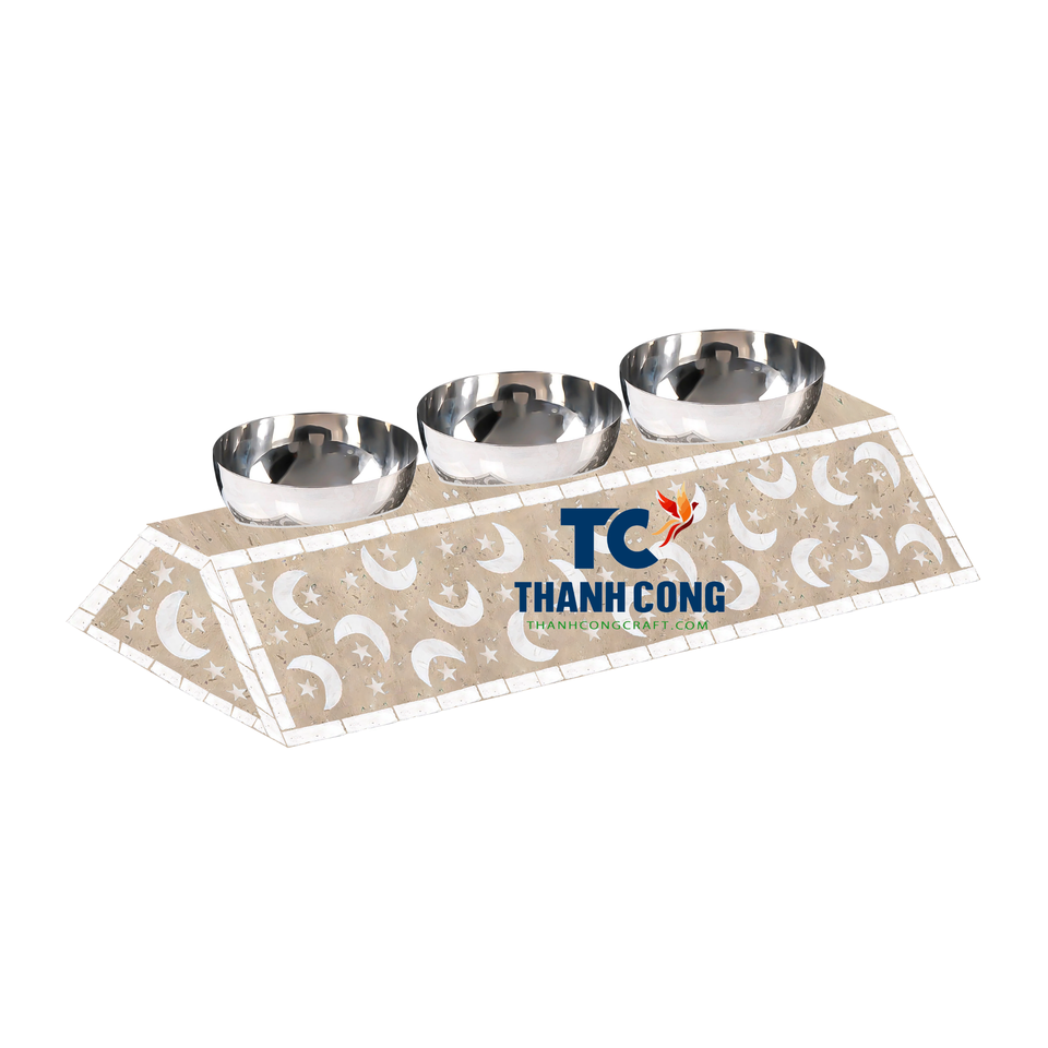 Hot Selling Bowl Set for Holiday Ramadan Eid Supplies Mother of Pearl Base With Metal Bowl Set Mother of Pearl Stand