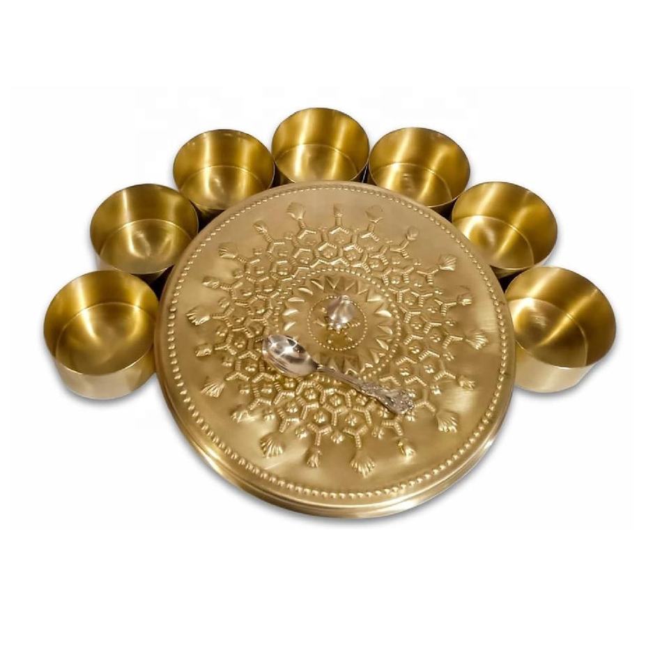 Hot Selling Brass Masala Spice Box Set 7 Containers Mandala Cutwork Design Spice Storage Organize Containers Home Kitchenware