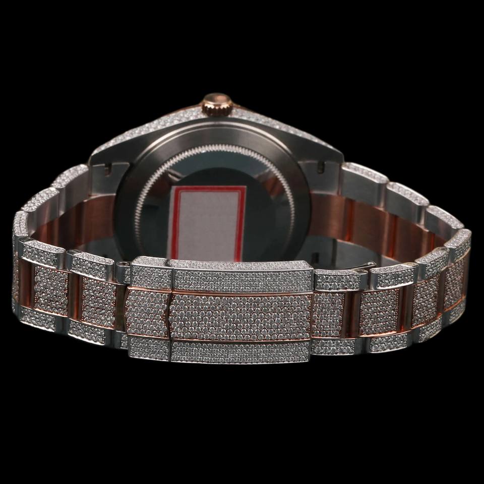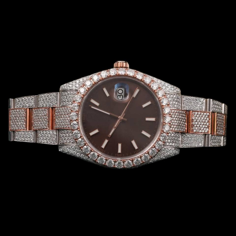 Hot Selling Brown Dial Fully Iced Out Round Cut Moissanite Diamond Two Tone Attractive Customized Man's Watch
