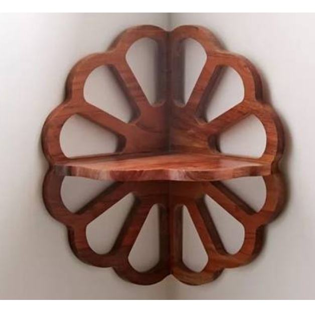 Hot Selling Brown Solid Wood Corner Flower Designer Wall Shelf Wood Carving Wall Bracket Wall Hanging Self Organizer