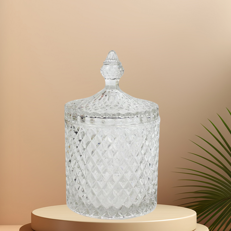 Hot Selling Candle clear Glass Embossment Mongolian Yurt Container Vessel Candy Dessert Jar With Lid