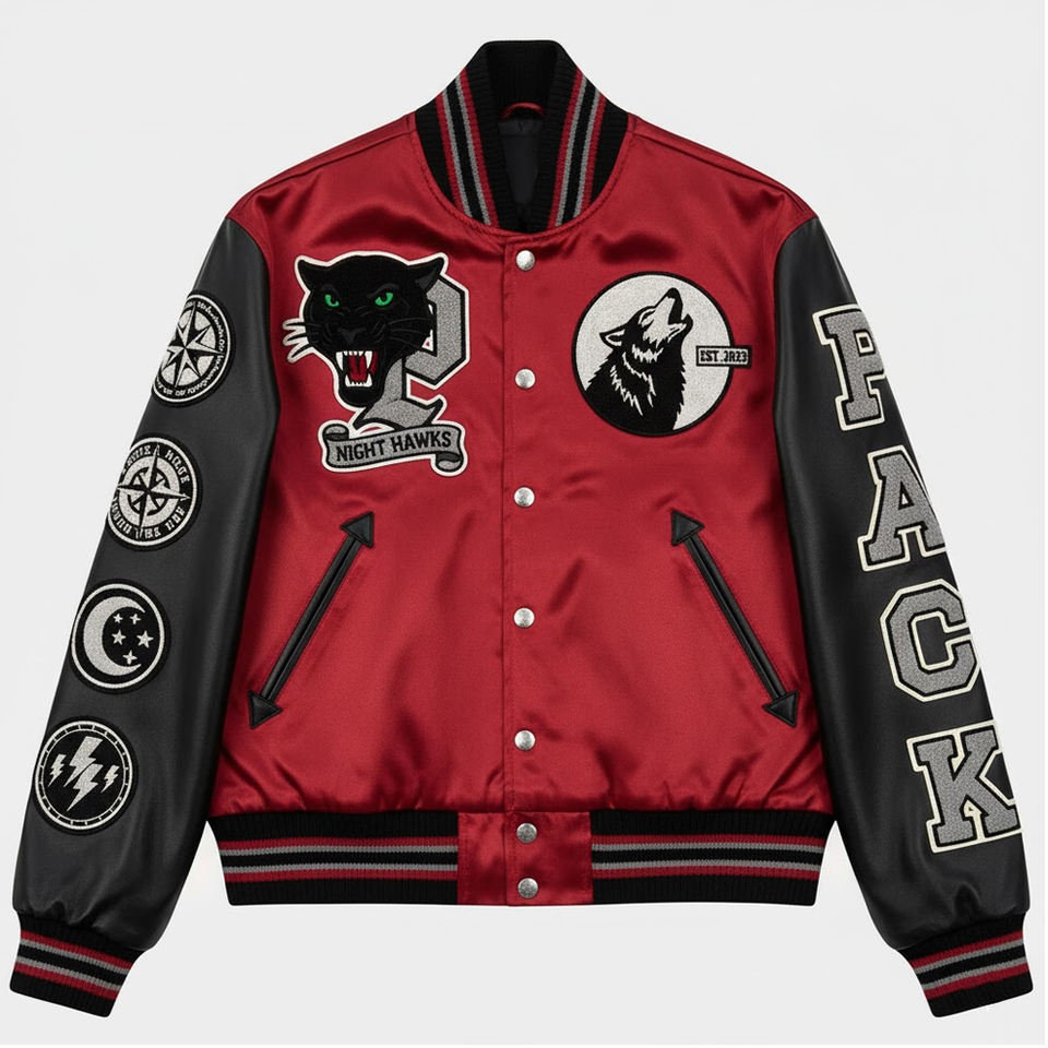 Product Name:Men Chenille Embroidery Satin Varsity Jacket