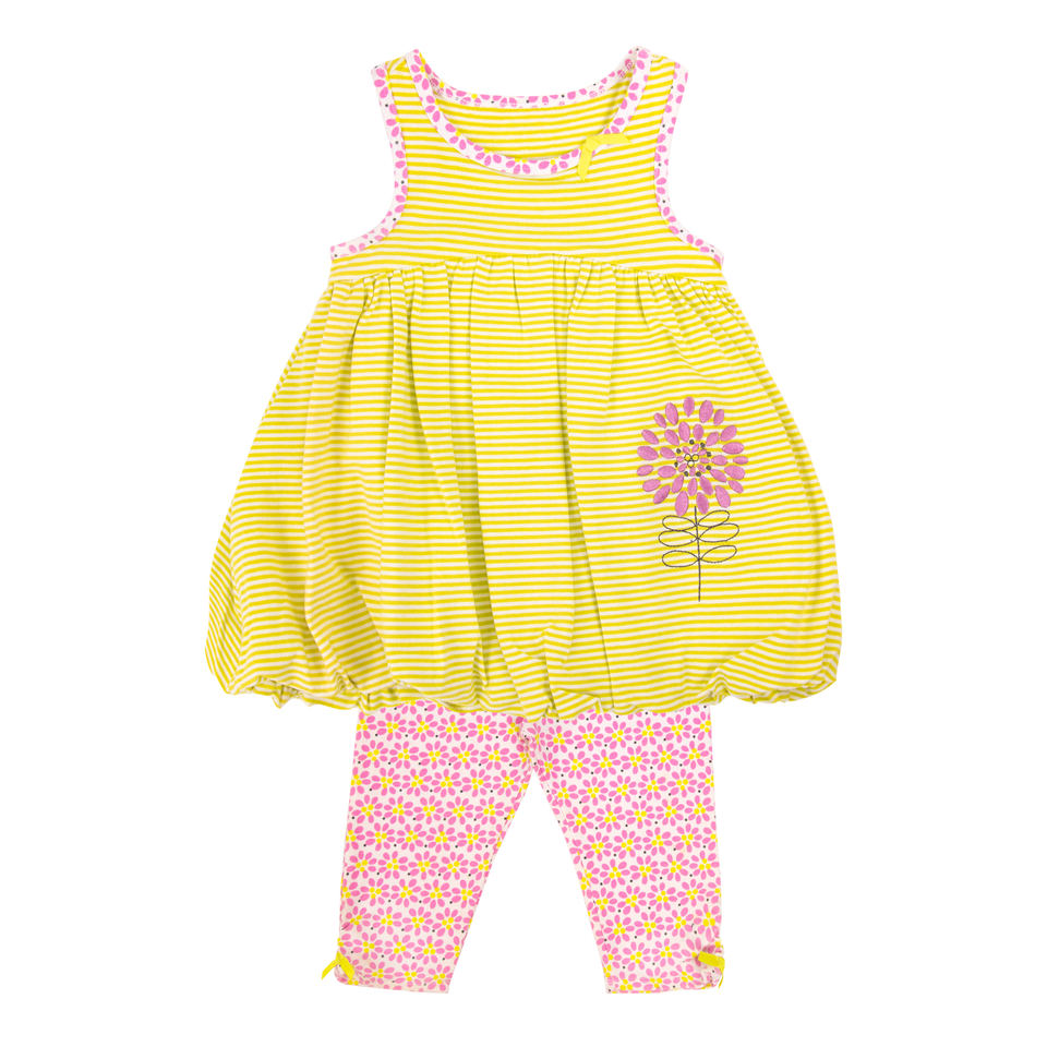 Hot Selling Children Blue Striped Cotton Breathable Flower Embroidery Lounge Wear Set Fashion Cute Dresses Leggings
