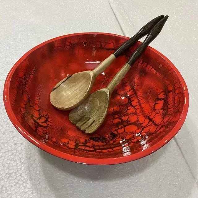 Hot Selling Chinese Enamel Print Wood Bowl With Spoon Dinnerware Wood Bowl Polish Dough Serving Bowl Wooden Handcrafted Bowl