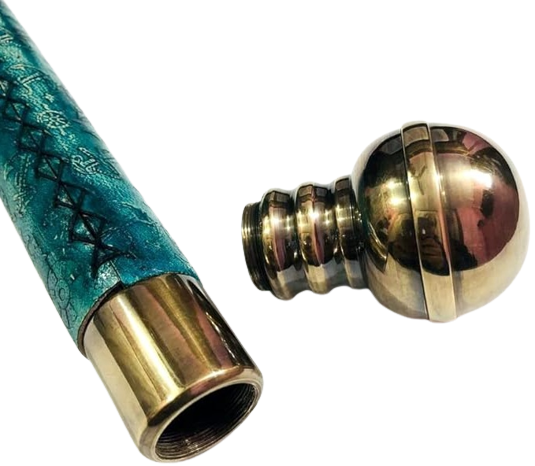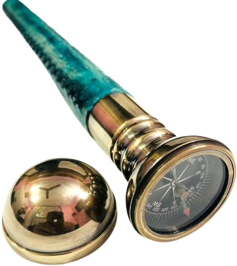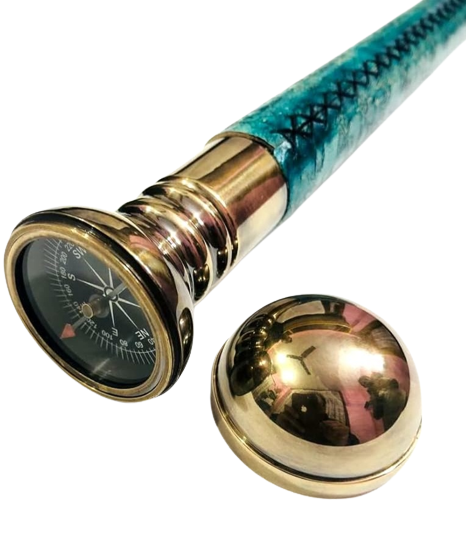 Hot Selling Classic Victorian Compass Handle Leather Wooden Walking Stick Antique Brass Rubber for Gentlemen's Activity-Hiking
