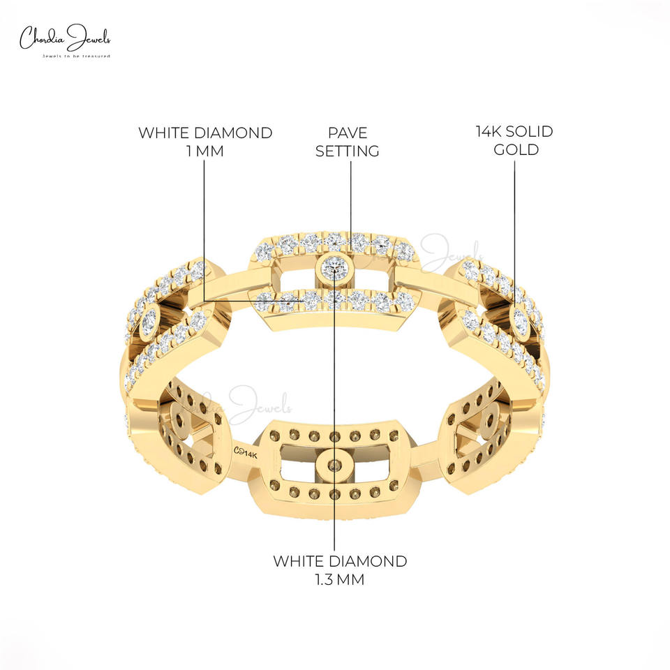 Hot Selling Classic Wedding 0.39 CT Real Diamond Link Chain Dainty Band 14K Solid Gold Bezel Set Stackable Ring