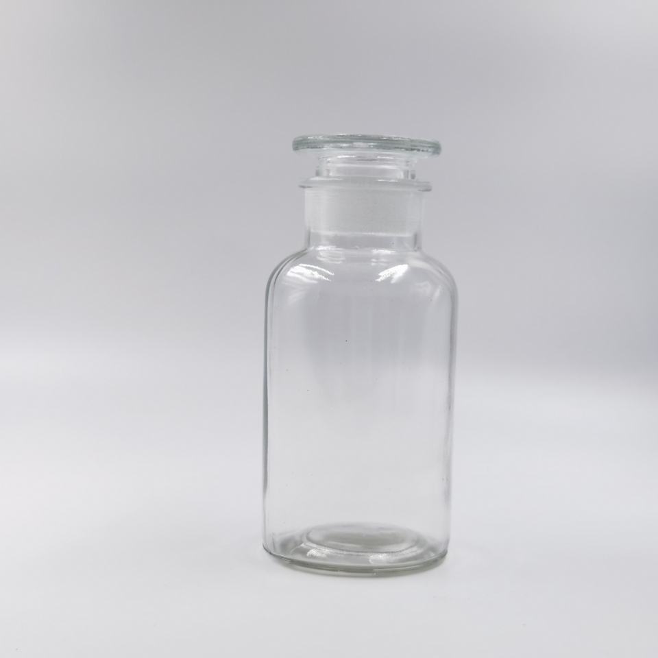 Hot Selling Clear Amber Glass Airtight Wide Mouth Reagent Bottle With Cork Stopper for Reagent Apothecary Jar with Glass Lid