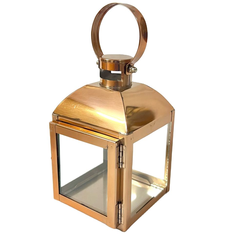 Hot Selling Clear Glass Stainless Steel Mini Lantern Rose Gold Metal Handmade Modern Pillar Holder Christmas Decorations Home
