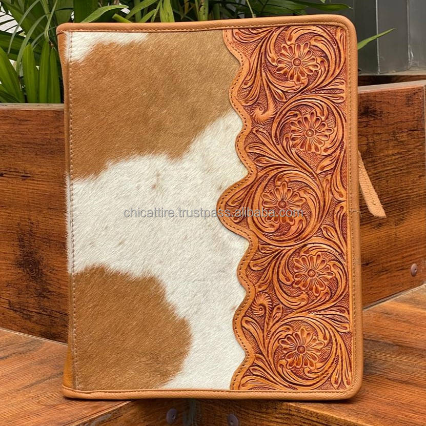 Hot-Selling Collection Wholesale A4 Office Stationery Conference Organizer Handcrafted Leather-Bound Cowhide Document Portfolio