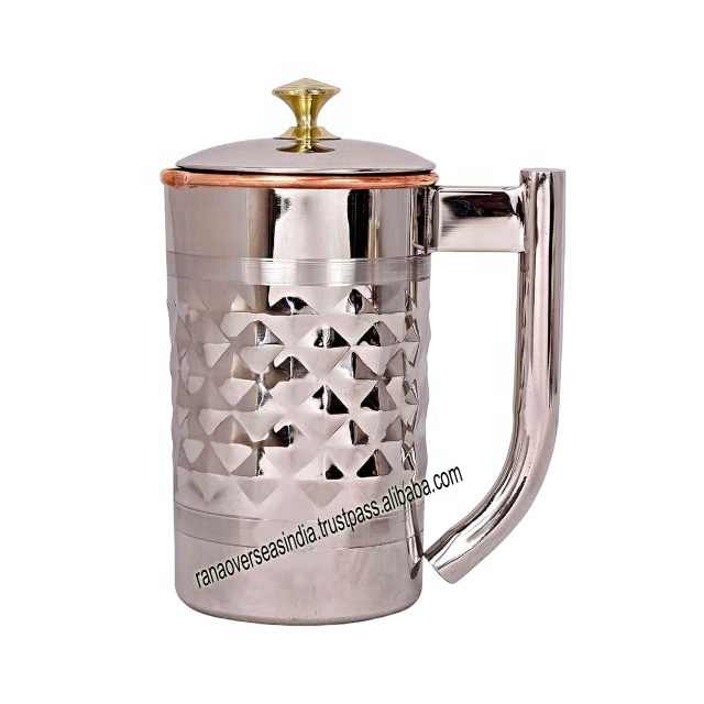 Hot Selling Copper And Stainless Steel Water Jug With Diamond Hammered Design For Home Hotel Restaurant