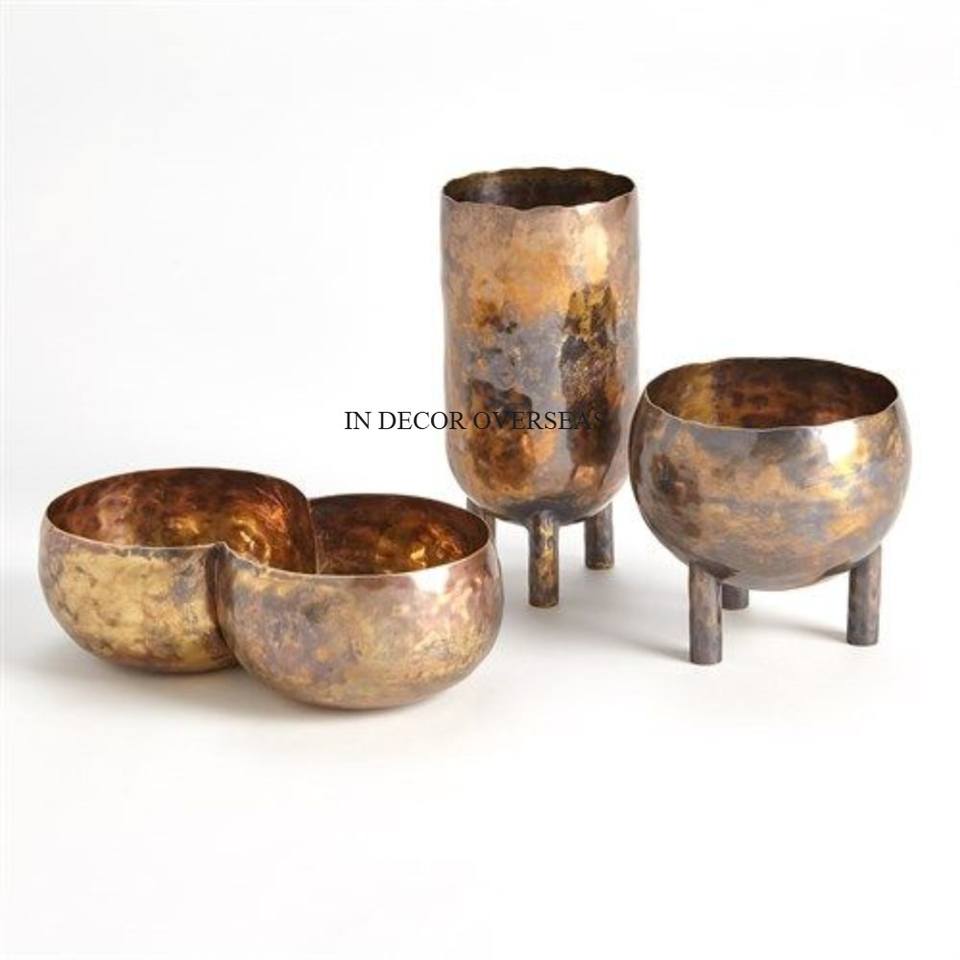 Hot Selling Copper Antique Finished Heavy Duty Metal Flower Planters With Black Color Powder Coated Unique Designer Stand Supply