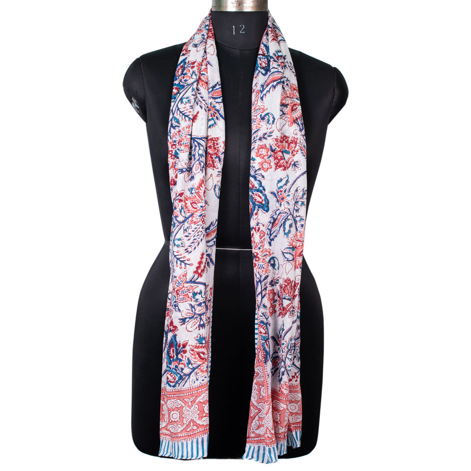 Hot Selling White Cotton Voile Scarf Handmade Sanganeri Block Printed Sarong with Leaf Pattern Beach Cover Ups Pareo Wholesale