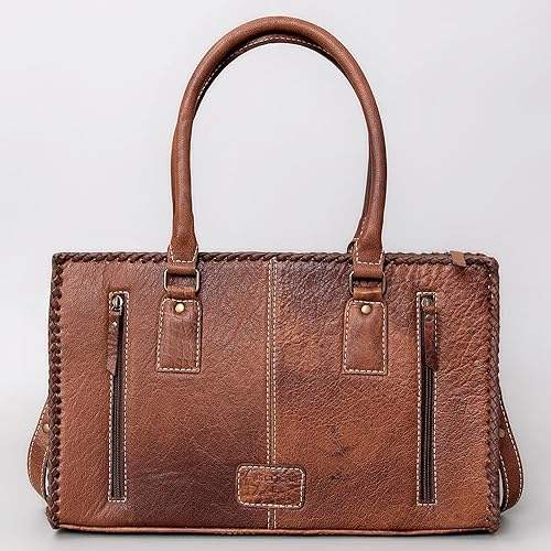 Hot Selling Cowhide Women Handmade Double-Handed Handbag Casual Zipper Closure Shopping Bag with Chain Decoration