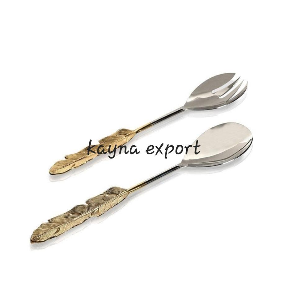 Hot Selling Creative Designer Stainless Steel Mirror Craftsman Cutlery Set 2 Fancy Gold-Plated Restaurant Food Serving Spoons
