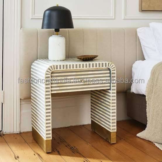Hot Selling Creative Pattern Bone Inlay White Nightstand New Trending Mother Pearl Bedside Table for Hospital Use Wholesale