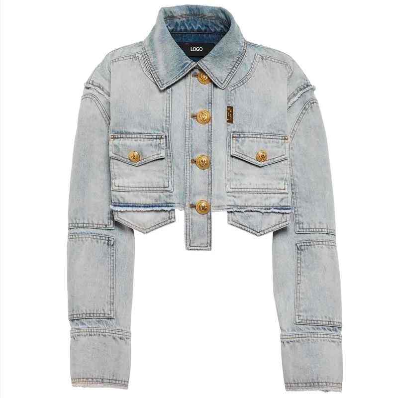 Hot Selling Cropped Denim Wear Clothing Ladies Jeans Jackets OEM ODM Design Embroidery Crop Denim Jacket & Outerwear Coats