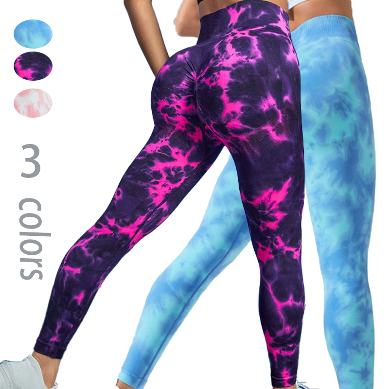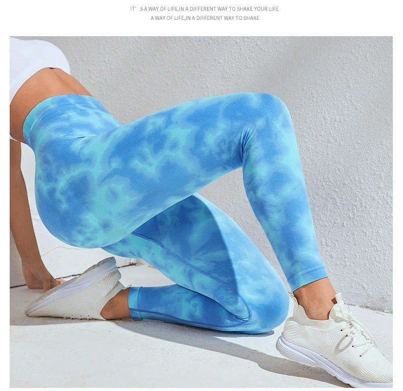 Hot Selling Cross-border Seamless High-waist Peach Hip-Lifting Tie-dye Quick-drying Yoga Pants Running Sports Fitness Trousers